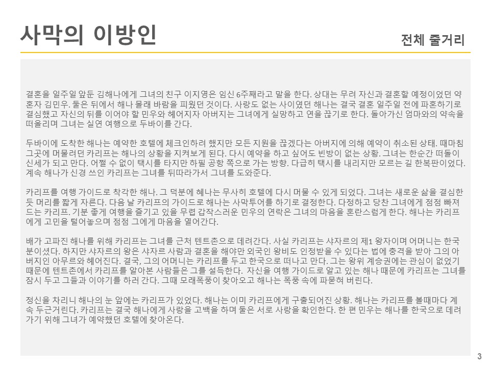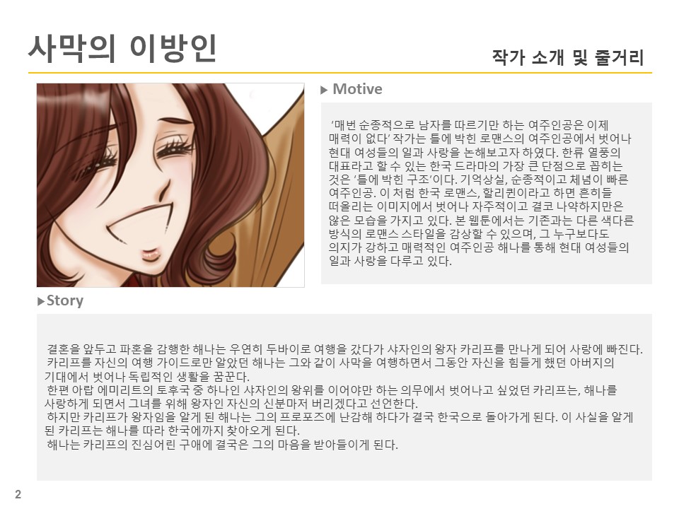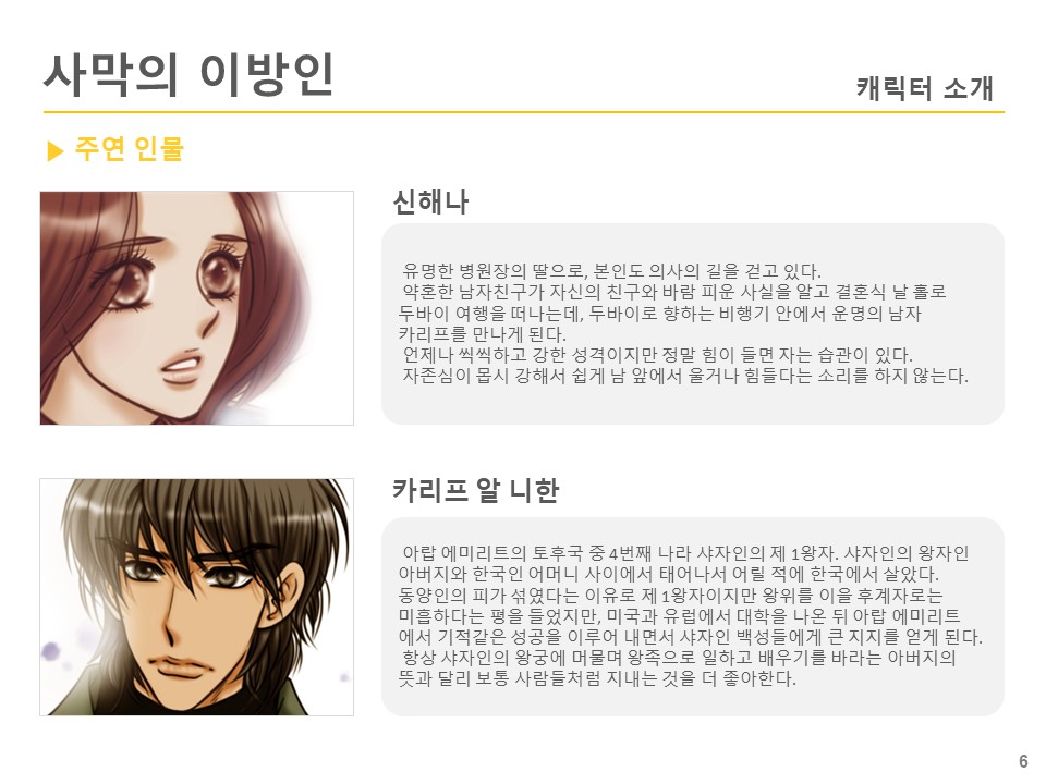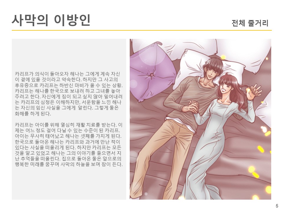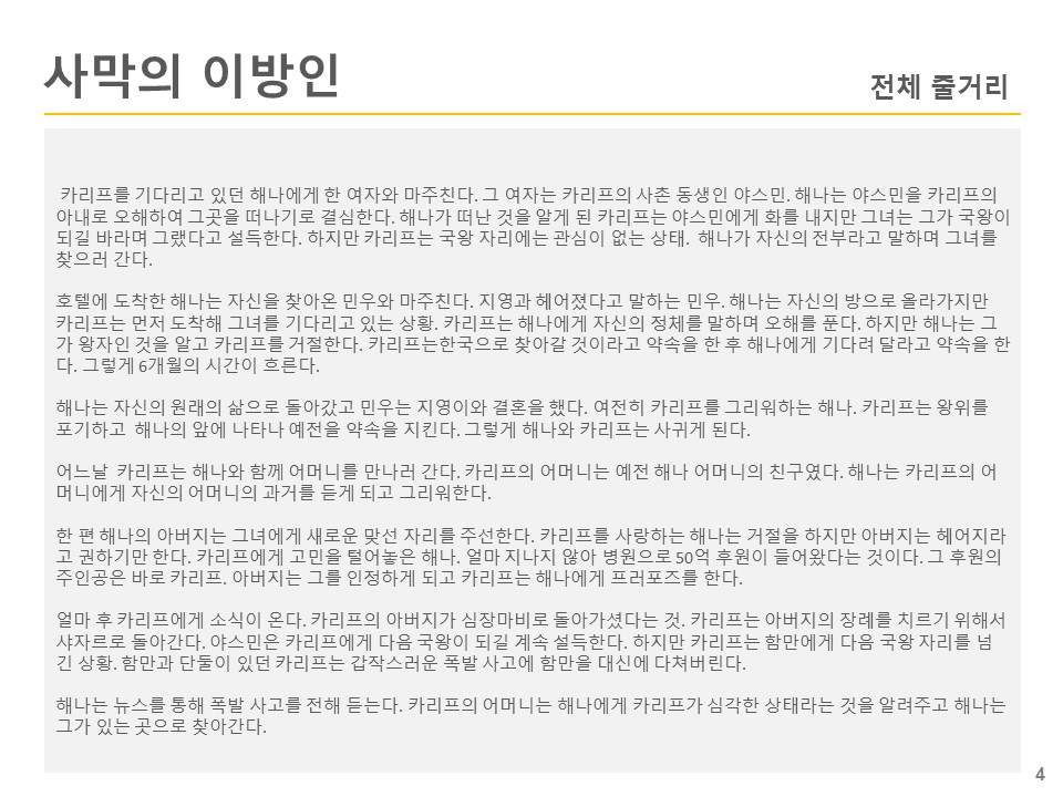 해나는 비행기 옆자리에 동승한 외국인 '카리프'를 여행 가이드로 착각해 그와 함께 여행을 한다. 사실 카리프는 두바이의 왕자로 바쁜 일정을 뒤로 한 채 해나와 동행하다 그녀에게 이끌리게 된다.