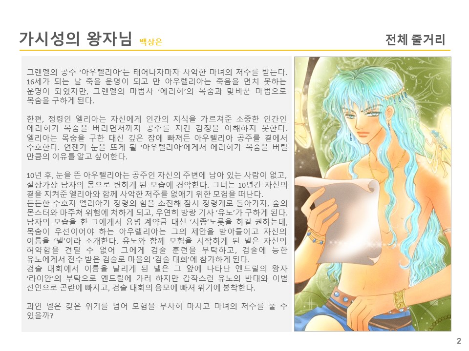 왕자가 된 공주 넬은 저주를 풀기 위해 여행길에 오르지만 연약한 몸으로 여행길은 험난 그 자체! 결국 넬은 살기 위해 용병 기사 유노의 시종이 되는 길을 선택하고 마는데…. 과연 넬은 저주를 풀고 동화 속 공주님처럼 행복하게 살수 있을 것인가. 넬의 좌충우돌 가시밭 모험 이야기 !