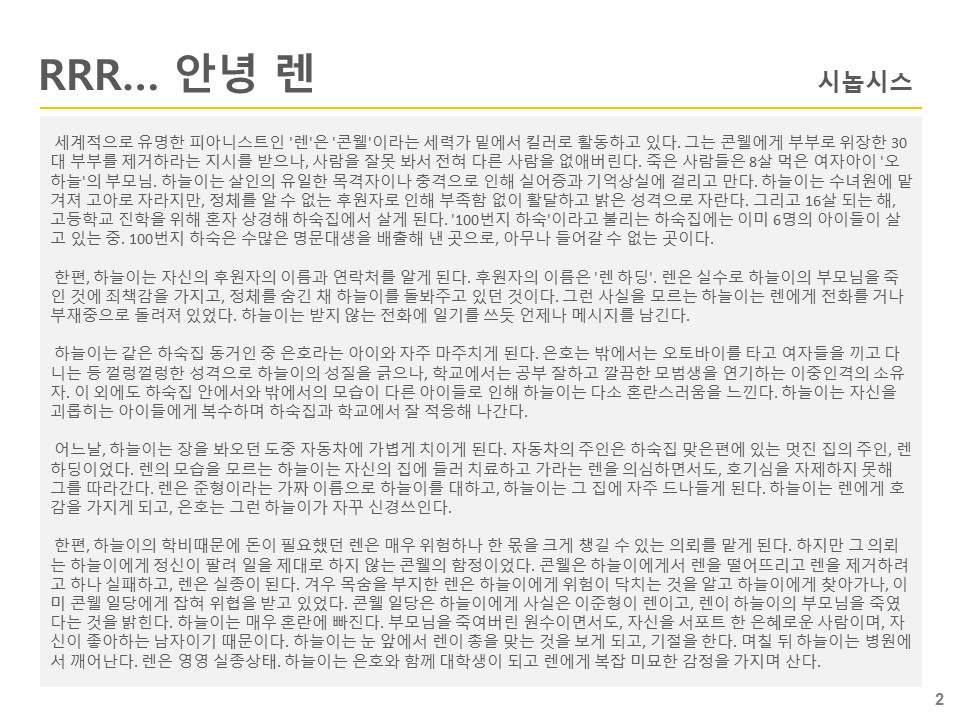 사고로 부모님을 잃고 고아원에 가게 된 하늘이에게는 키다리 아저씨처럼 그녀를 보살펴주는 누군가가 있다. 고등학교에 들어가 드디어 키다리 아저씨의 이름 렌과 전화번호를 알게 된 하늘이는 매일같이 감사의 인사 메시지를 남기기 시작한다. 대답도 없는 전화로 매일같이 전화를 하는 하늘이. 안녕 렌! 좋은 아침이죠?