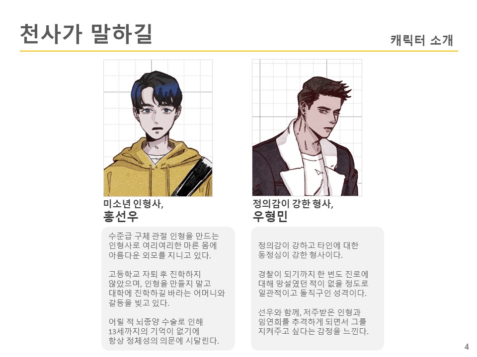 인형 같은 외모로 인형을 제작하는 ‘미소년 인형사’로 유명한 홍선우. 그러나 대학에 진학하길 바라는 어머니 홍미자와 항상 갈등을 빚고 있다.