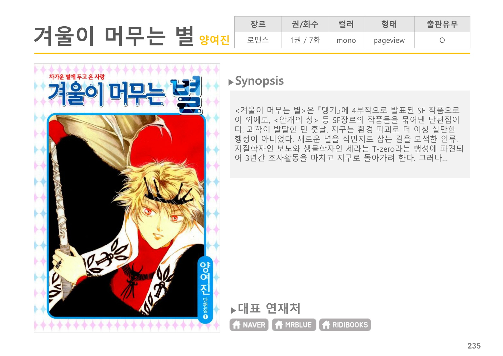 <겨울이 머무는 별>은 소녀잡지 <댕기>에 4부작으로 발표된 SF 작품이다. 이 외에 <안개의 성> 등 SF 장르의 단편이 수록된 단편집이다.