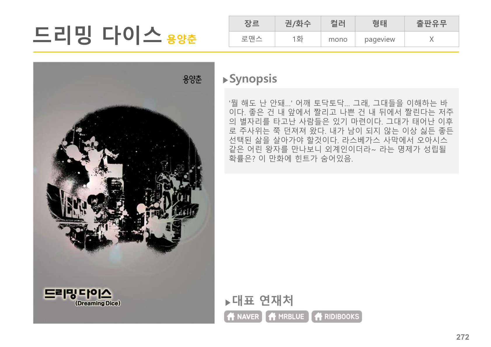 '뭘 해도 난 안돼….' 어깨 토닥토닥…. 그래, 그대들을 이해하는 바이다. 좋은 건 내 앞에서 잘리고 나쁜 건 내 뒤에서 잘린다는 저주의 별자리를 타고난 사람들은 있기 마련이다. 그대가 태어난 이후로 주사위는 쭉 던져져 왔다. 내가 남이 되지 않는 이상 싫든 좋든 선택된 삶을 살아가야 할 것이다. 라스베가스 사막에서 오아시스 같은 어린 왕자를 만나보니 외계인이더라~라는 명제가 성립될 확률은? 이 만화에 힌트가 숨어있음.