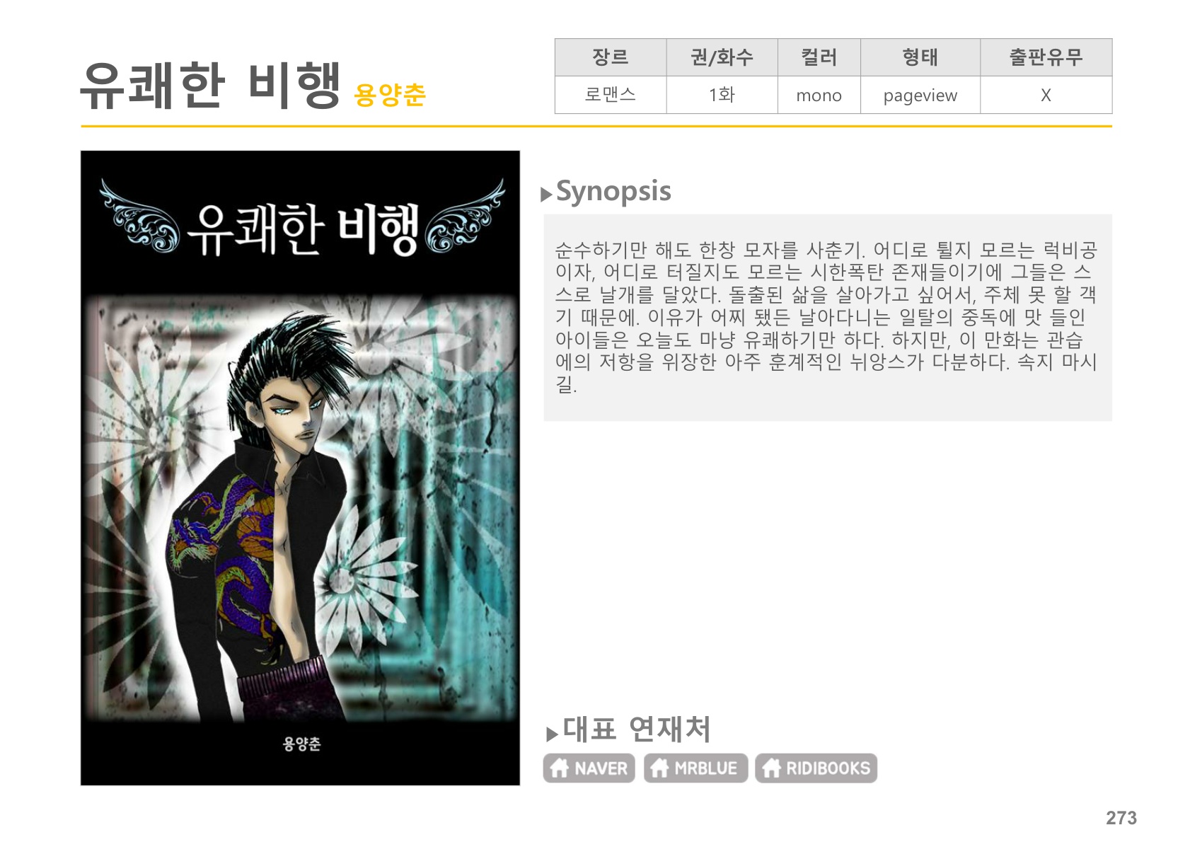 어디로 튈지 모르는 럭비공이자, 언제 터질지도 모르는 시한폭탄 존재들이기에 그들은 스스로 날개를 달았다. 돌출된 삶을 살아가고 싶어서, 주체 못 할 객기 때문에, 이유가 어찌 됐든 날아다니는 일탈의 중독에 맛 들인 아이들은 오늘도 마냥 유쾌하기만 하다. 하지만 이 만화는 관습에의 저항을 위장한 아주 훈계적인 뉘앙스가 다분하다. 속지 마시길.