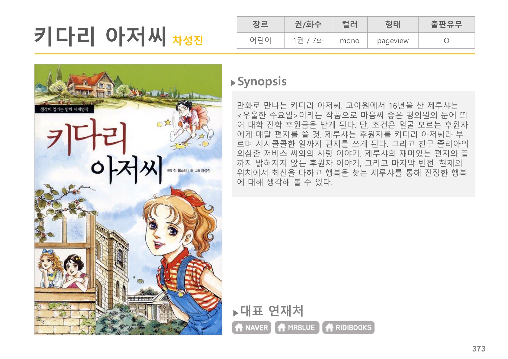 만화로 만나는 <키다리 아저씨>.