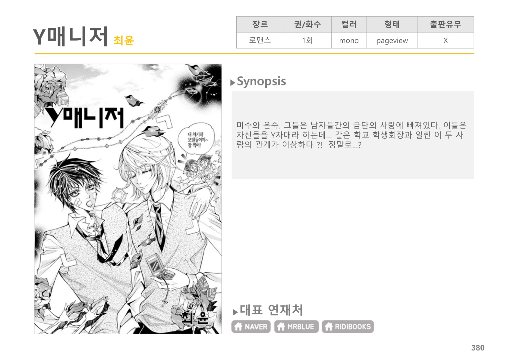 미수와 은숙. 그들은 남자들 간의 금단의 사랑에 빠져있다. 이들은 자신들을 Y 자매라 하는데…. 같은 학교 학생회장과 일찐 이 두 사람의 관계가 이상하다?! 정말로…?